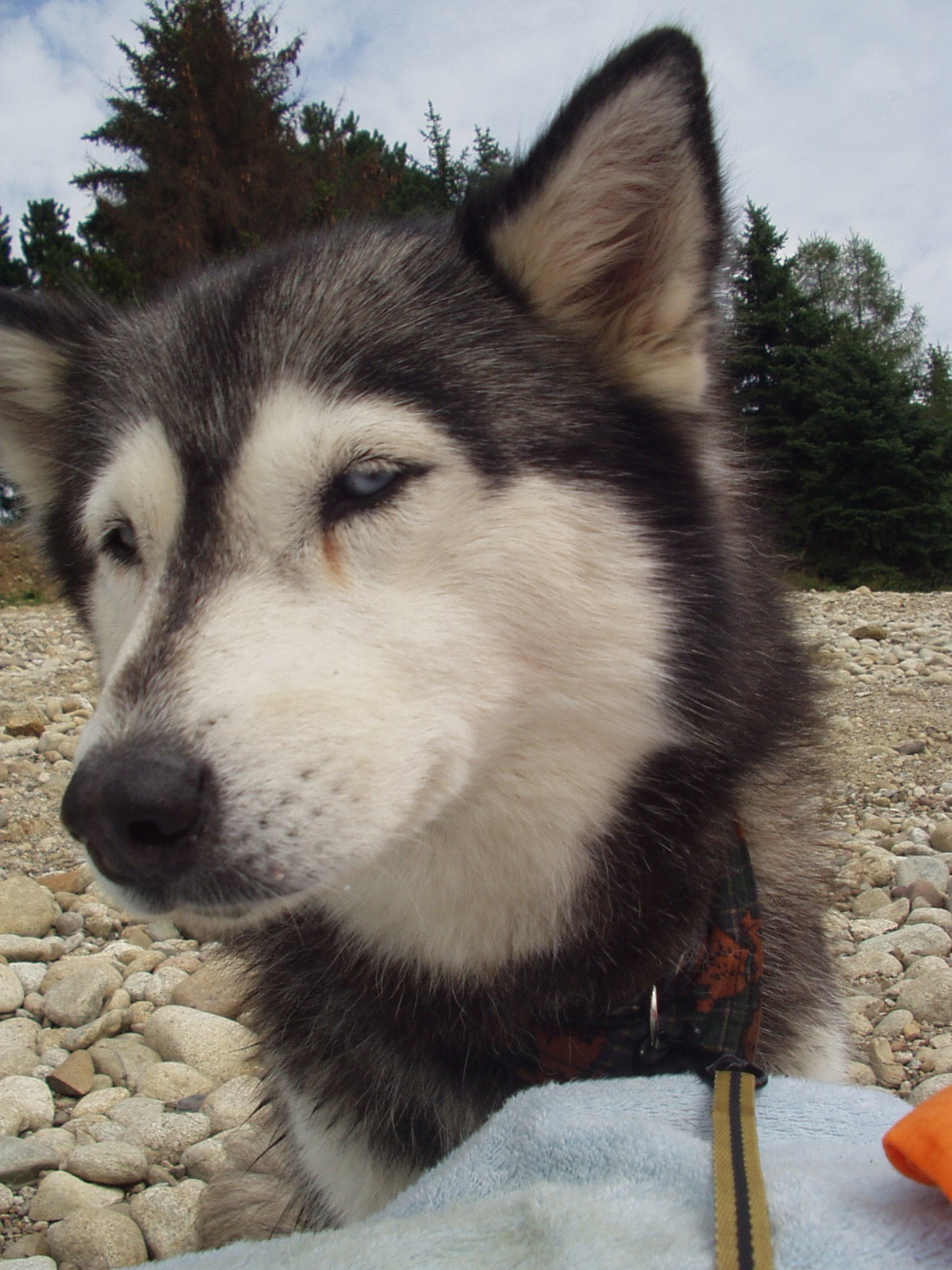 Olin je desať ročná sučka huskyho. K nám prišla ako tretia, keď mala 8 rokov. Dovtedy aktívne behala v záprahu ( ako vodca svorky). Potom čo prišla k nám , behá už iba canicross a užíva si psí dôchodok. Chvíľu behala aj agility a boli aj nejaké pokusy o vodnú záchranu, to sa však Oline naozaj nepáčilo , a preto sme zostali pri canicrosse a doktrekingu. Ale k jej „TOP“ koníčkom jednoznačne patrí loviť všetko živé čo sa okolo nej mihne.